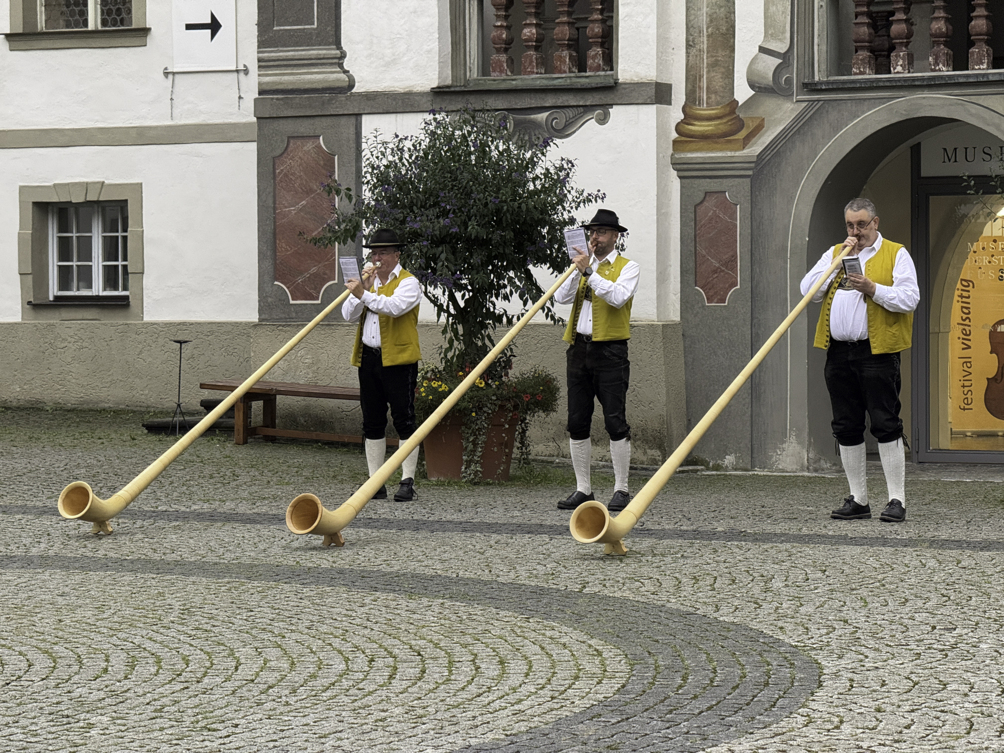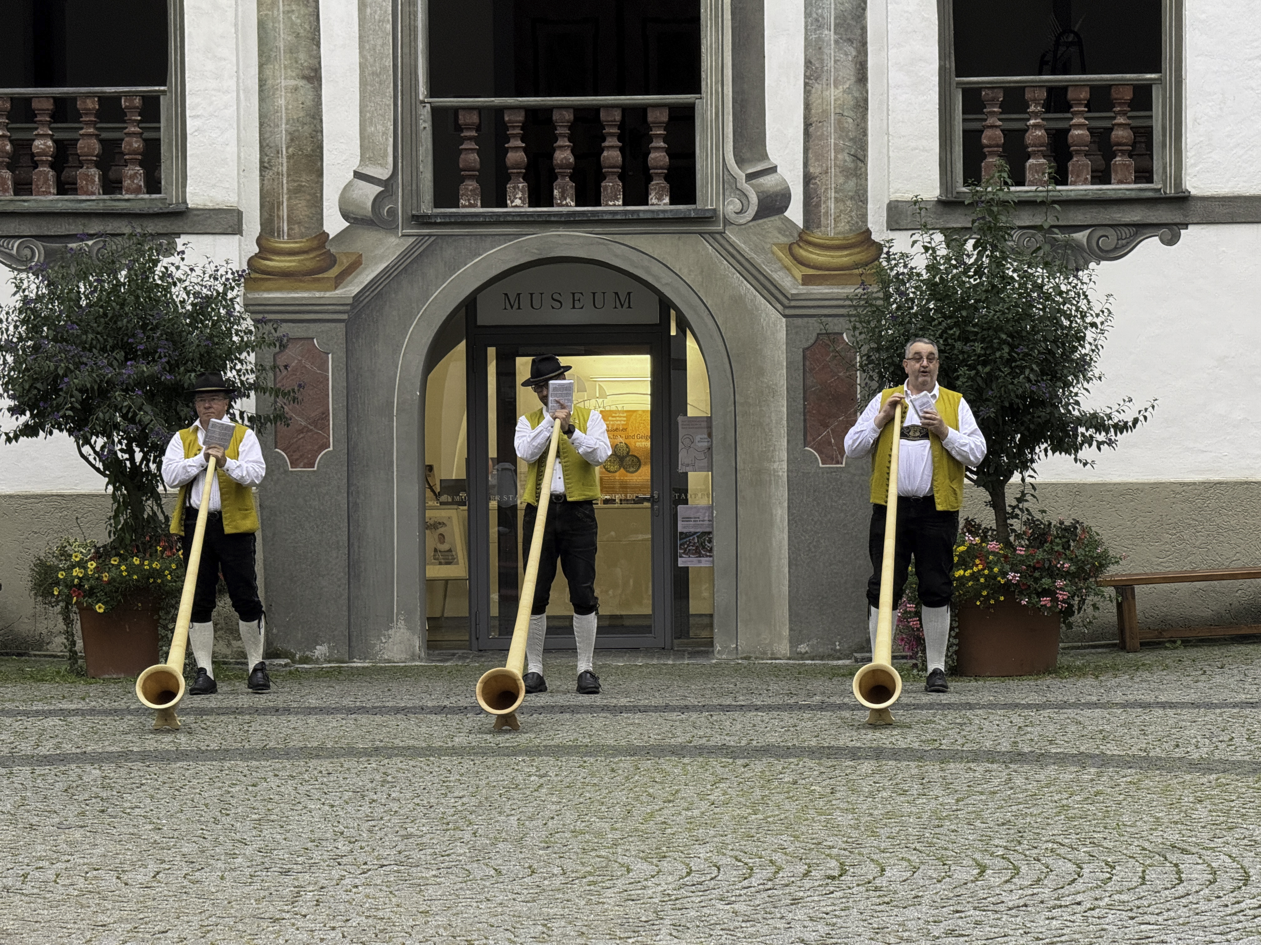 Monday September 1st - After breakfast some of us went for a bike ride and to get photos of Neuschwanstein from an anble that we missed on our last trip. Others of us wandered around Füssen and were serenaded by German Alphorn players. We joined up at lunchtime for some pizza in the town square, followed by....you guessed it, gelato! Later, more walking about town.
